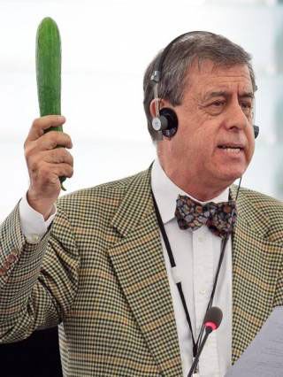 Un politico europeo a Strasburgo estrae la prova del reato: un cetriolone