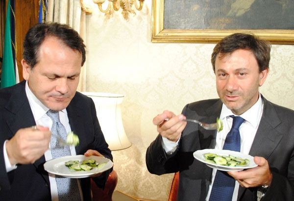 Un gustosissimo (?!?) piatto di cetrioli per il ministro (?!?) Saverio Romano (a sinistra)