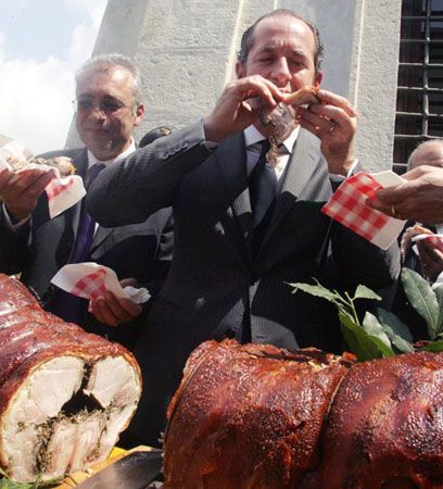 A noi la polenta piace. Molto. E il risotto è un'invenzione straordinaria. Per non parlare della cotoletta "orecchia d'elefante". Detto questo, quando vediamo a Pontida l'ometto calderolo in camicia verde difendere i furbetti delle quote latte e dire: "Io voglio mangiare padano", beh, un po' ci passa la voglia. E ci viene voglia di strafogarci di porchetta (come l'ex ministro Luca Zaia, nella foto). Anche perché, è notizia di pochi giorni fa, la porchetta di Ariccia è diventata Igp. Ma siccome l'estate incombe e la prova costume anche, allora vi proponiamo una nuova dieta. Si chiama dieta Montecitorio: per dimagrire basta osservare con intensità la gallery di politici magna magna, qui di seguito.