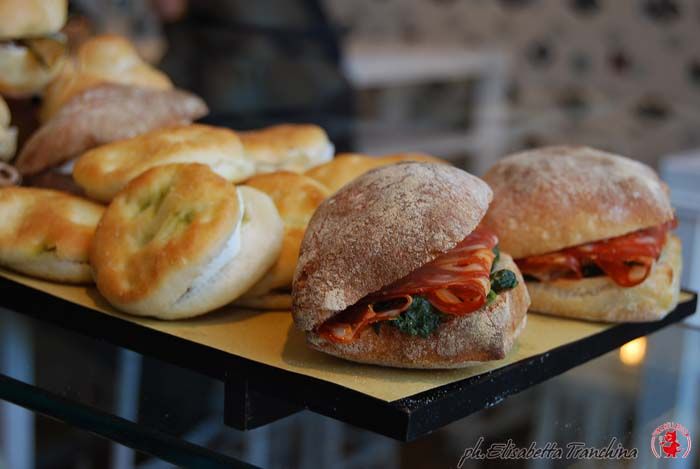 Alcuni panini pronti, in attesa di essere scelti. Le baguette vengono farcite sul momento. (5 euro)