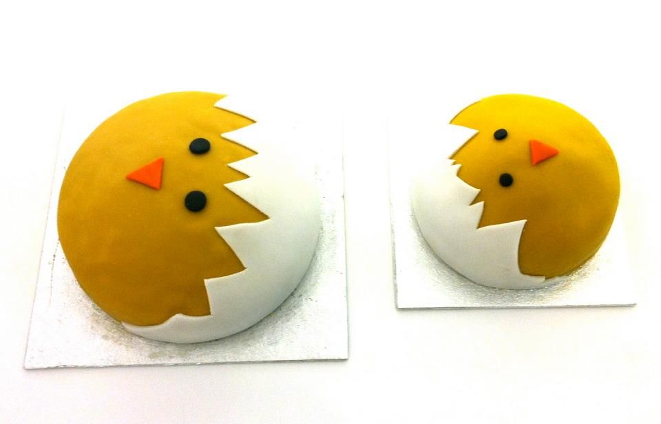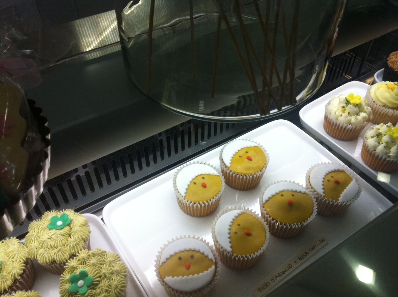 Prezzi: torte a forma di pulcino da 20 a 60 euro, cupcakes 3,50 euro l'uno.