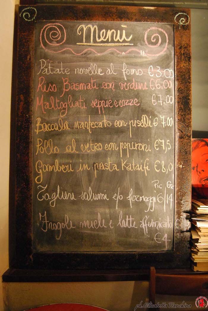 Il menu del Kino bistrot, che cambia quasi ogni giorno, basta un colpo di spugnetta