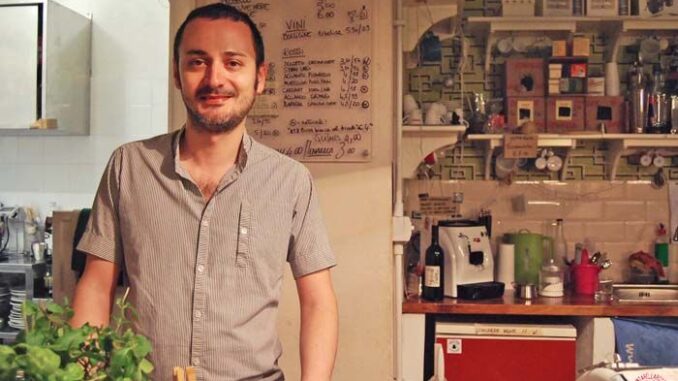 Maltagliati seppie e cozze, baccalà mantecato con piselli, pollo al vetro con peperoni, gamberi in pasta Kataifi. Sono alcuni dei piatti in menu al Kino Cinema e Bistrot (che vi abbiamo raccontato qui). Sono le creazioni di Marco Tombolini, chef per passione, ma anche per caso. Sì, perché Marco per anni è stato un violinista. Ha girato il mondo con la sua musica, per poi accorgersi di preferire la calma di un solo luogo. Il suo palcoscenico adesso è la cucina. E da lì ci racconta di un'altra musicista-gastronoma, della sua esperienza a Barcellona, del suo apprendistato (non sempre esaltante) nei ristoranti romani e del suo chef preferito (Pascal Barbot), che lavora senza menu e senza carta dei vini. Un sogno, per Marco, che potrebbe diventare realtà.