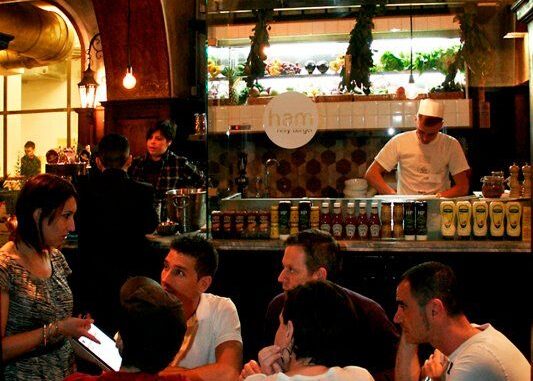 Si è inaugurato oggi al pubblico la sede romana (ce n'è una a Milano) del nuovo Ham Holy Burger, che prende il posto della vecchia cara Birreria Peroni delle sorelle Vizzoni, aperto da ben 81 anni in zona Piazza Fiume. Un pezzo di storia che se ne va, celebrato anche da Fulvio Abbate nel video di Teledurruti che ripubblichiamo sotto. Per dirne una, in questi locali fu girato In Nome del popolo italiano, di Dino Risi, con Vittorio Gassmann e Ugo Tognazzi. Ma bando alle nostalgie ed ecco il locale nuovo e moderno, di proprietà del gruppo Sebeto, che ha Rossopomodoro e Anima e Cozze. Due le curiosità: la prima è che Ham Holy Burger (nonostante la provenienza non proprio gourmet dei proprietari) si autodefinisce l'Accademia dell'Hamburger Gourmet. E vedremo se davvero sono hamburger gourmet: la carne è di razza piemontese certificata Slow Food. La seconda è che per ordinare si usa l'Ipad (ce n'è uno in ogni tavolo). Trovata tecnofighetta per giovani modernisti o utile rinnovamento della procedura di ordinazione? A voi la scelta. Noi ci abbiamo mangiato oggi e il delirio da primo giorno (dopo le inaugurazioni per vip dei giorni scorsi, con Fabrizio Corona e Federica Pellegrini) era evidente. Ma il posto è bello (intatte le boiserie d'epoca) e il locale divertente. Ve lo presentiamo, prima di farne una recensione più approfondita.