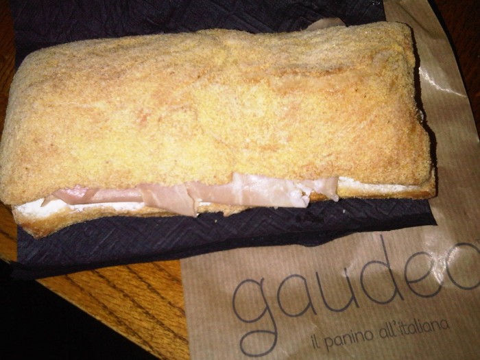 Gaudeo è un negozietto piccolo ma saporito, start up di un progetto che nasce a Roma da soci nordici (Veneto e Liguria), destinato ad espandersi e a trovare nuove filiali. E speriamo che funzioni davvero, perché la formula è buona: panini all'italiana gourmet, con materie prime di grande qualità e una ricca scelta di varianti. A condurre Gaudeo, laboratorio artigianale di panini appena nato in via del Boschetto a Monti, una coppia di simpatici ragazzi, Enrica e Christian Vit. Enrica ci spiega che il pane, in arrivo da Roscioli, è tutto di Kamut perché, dopo un periodo di prova, si è stabilito che è quello che resiste meglio e non diventa molle o plasticoso.