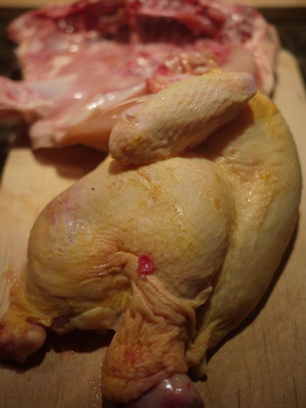 Dividete (o se non siete così temerari fatevi dividere) il pollo in due parti uguali.