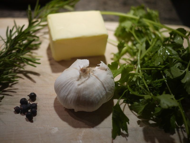 Aggiungete il burro, le bacche di ginepro, il rosmarino e un pizzico di pepe. Io ho utilizzato il burro salato, ragion per cui non ho aggiunto altro sale, se preferite potete sempre utilizzare il burro normale e aggiungere un pizzico di sale.