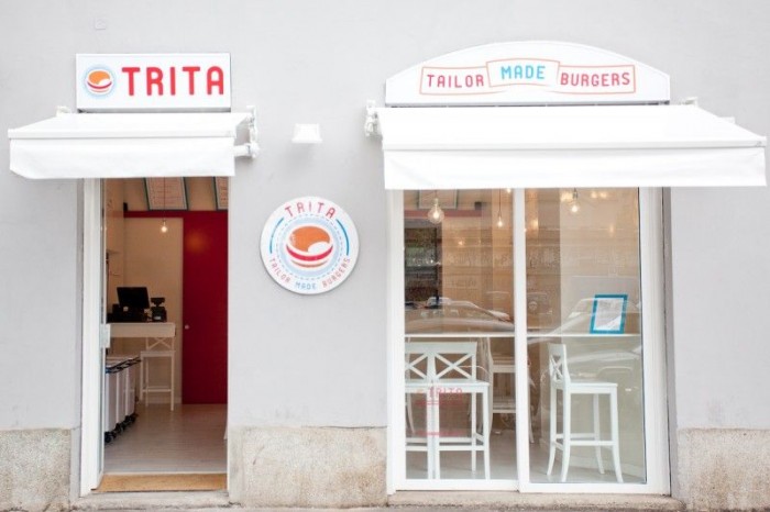 A sentire parlare i milanesi, Trita, in fatto di hamburger, è il locale del momento. Si trova al numero 6 di piazza XXIV maggio, a duecento metri, in direzione Darsena, da corso di Porta Ticinese. A una prima rapida occhiata, sembra una gelateria. Sugli arredi, tirati a lucido, una primavera di azzurrino e rosso magenta, su sfondo bianco. Ci si siede al tavolo rotondo al centro della sala, candido come il resto. L'alternativa è accomodarsi sugli alti sgabelli che circondano le pareti, oppure su quelli davanti alle vetrate, che purtroppo danno sulla strada (ma, si sa, il diavolo è nei dettagli).