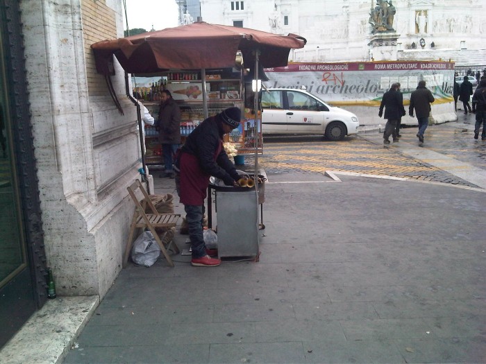 Ah, a proposito, lo scorso anno abbiamo preso un cartoccetto di castagne da questo caldarrostaro di piazza Venezia. Sarà stato il gelo oppure il Cinipede Galligeno, la vespa originaria della Cina che sta devastando le castagne, fatto sta che il cartoccio di caldarroste veleggiava verso cifre assurde: il cartoccetto con numero sei castagne costava la bellezza di euro cinque.
