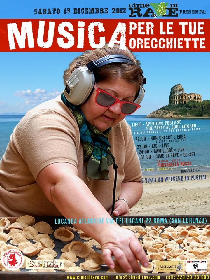 Ok, ok. Non era un granché. Non c'avete creduto neppure un istante. Però è vero che scendiamo in campo per la difesa del Risopatatecozze. Lo faremo sabato 15 dicembre, a Roma, alla Locanda Atlantide (via dei Lucani 22), dove orgogliosamente saremo special guest (nonché patrocinatori) di "Musica per le tue orecchiette", una serata (non solo pugliese) di quelle memorabili in cui ballare, mangiare, rimorchiare e incidentalmente difendere la purezza del nostro amato piatto dai suddetti tentativi di corruzione. All'uopo, all'ingresso, distribuiremo copia del primo, fondamentale, manifesto "Risopatatecozze bene comune" con l'unica vera, introvabile ricetta recuperata da uno chef di Barivecchia (ma conosciuto e celebrato anche nel resto del mondo).