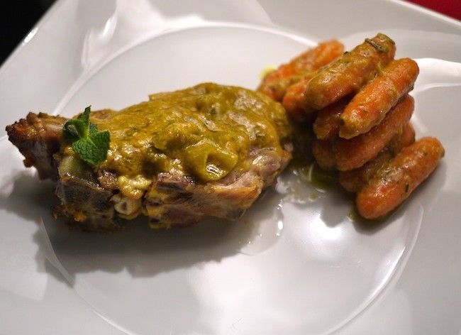 Servite il maialino accompagnandolo con le verdure e nappandolo con la salsa di yogurt.