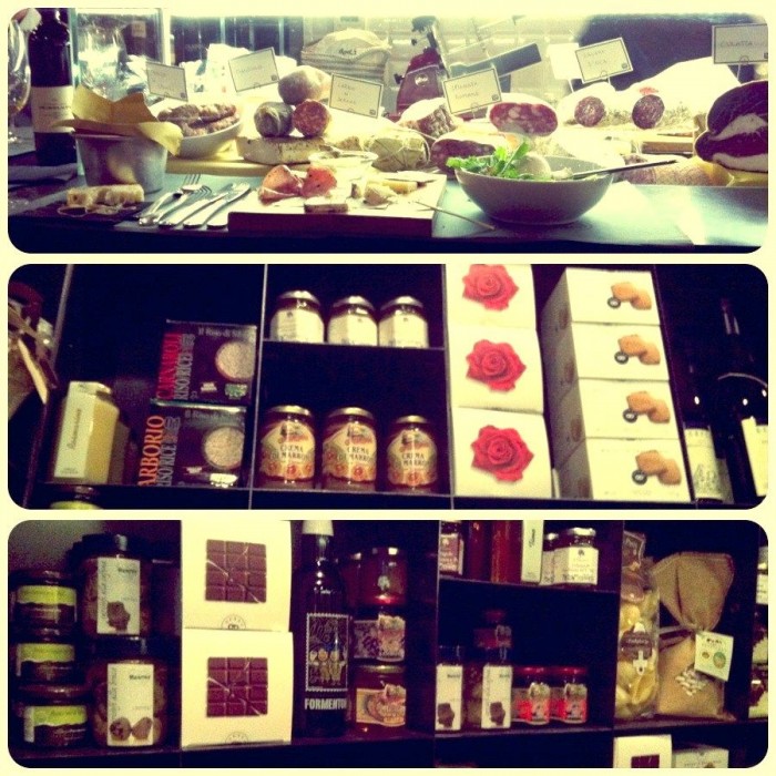 Un ultimo doveroso accenno va alla progettazione di questo locale, piccolo ma funzionale. Infatti, in soli 60 metri quadri, lo studio Scape ha creato un ambiente familiare e moderno allo stesso tempo. Oltre al mattonellato bianco dietro al bancone, ormai elemento ricorrente e caratterizzante i bistrot più in voga, e agli scaffali ricolmi di prodotti, i progettisti hanno allestito posti a sedere sia al bancone, naturale prolungamento del banco principale dei salumi e dei formaggi, sia ai tavoli, originalissimi, piccoli, in legno e reclinabili, così da poter concedere o meno libertà di spazio, secondo l'occorrenza.