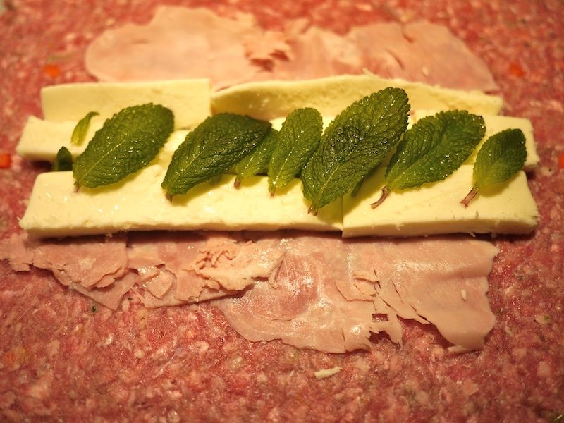 Farcitelo con il prosciutto cotto, dei pezzi di formaggio e della menta (sia chiaro che potete usare il condimento che più vi piace).