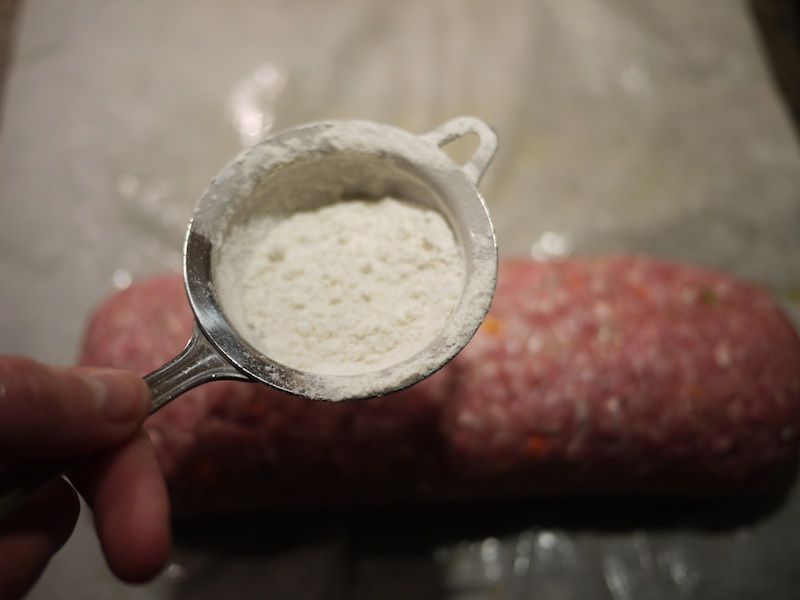 Arrotolate il macinato attorno alla farci aiutandovi con la carta da forno e dategli la tipica forma. Pressate per bene con le mani per fare aderire i bordi.
