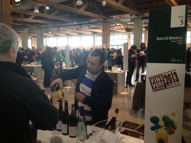 L'eterna lotta fratricida tra i vignaioli, divisi in diverse associazioni, non aiuta di certo. E così chi ha deciso di venire al Vinitaly viene più o meno velatamente accusato di connivenza con il "nemico". Pochissimi i produttori che hanno scelto di stare contemporaneamente al Vivit, a Cerea (Viniveri, nella foto in alto) e a Villa Favorita (Vinnatur). La brava Elena Pantaleoni, della Stoppa, allarga le braccia, un po' stufa delle polemiche: "L'altra sera sono stata alla cena finale di Cerea. E' stato emozionante, noi produttori siamo soprattutto amici e lì c'è un clima splendido". Ma il mercato ha le sue necessità: "E infatti siamo qui. Però ricordiamoci che le fiere durano tre giorni, poi c'è il resto dell'anno". Certo, ma se non si vuole rinchiudersi nell'autoreferenzialità, far provare i vini a chi già li conosce e li ama, non resta che aprirsi al mondo. E Vinitaly potrebbe essere una bella porta di ingresso. Se non fosse che la porta è stretta e conduce a un budello.