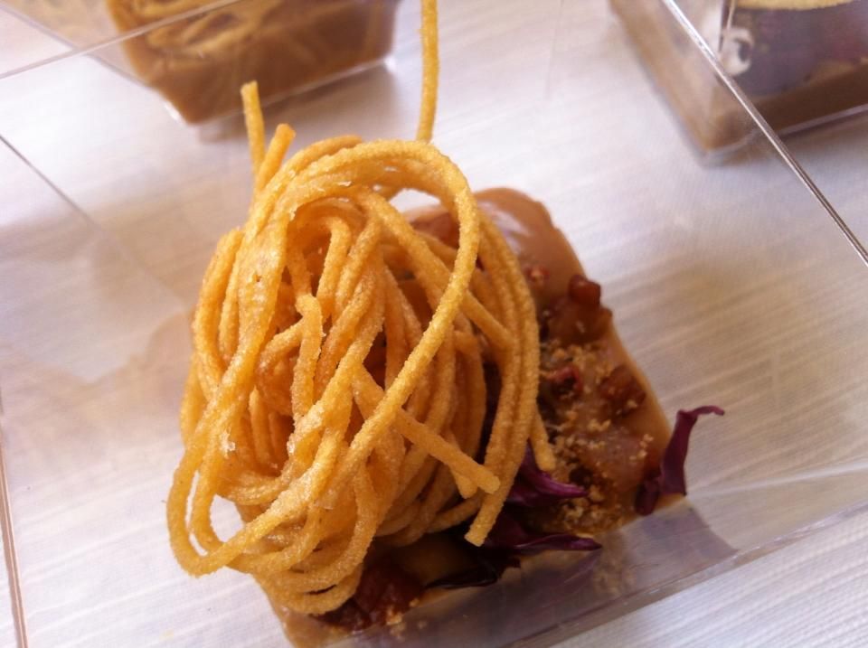 Si chiama Treviso: Dripping Taste – nome che ricorda l'action painting e gli schizzi di colore di Jackson Pollock, ed è un evento itinerante che porta in giro per l'Italia la cucina trevigiana, tra tradizione e rivisitazione artistica. La tappa romana ha visto come protagonisti Roberto Franzin, chef della Penna d'Oca, già ideatore di Carciofiamo, Andrea Dolciotti, di Inopia, e lo chef patissier Andrea de Bellis. Franzin ha inscenato una live performance fatta di contaminazioni tra street e finger food, con i risultati che potete ammirare (e che potrete gustare nelle prossime tappe dell'evento, che vi segnaleremo).