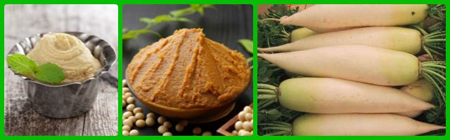 – Rapanelli e daikon. Quest’ultimo è di origine orientale ma ormai si coltiva anche da noi, ha lo stesso sapore dei rapanelli ma con la buccia bianca. Entrambi sono ottimi per sciogliere i grassi e facilitarne l’eliminazione. Si mangiano crudi in insalata, tagliati a fettine, a la julienne o grattuggiati, conditi con olio o da sgranocchiare come crudité.