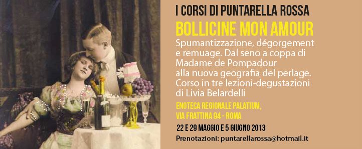 Si comincia mercoledì 22 maggio 2013. Se non sapete cos'è il dégorgement, per non parlare del remuage, ci pensa Livia Belardelli a spiegarvelo. Con esempi pratici, nel senso delle bollicine, da vedere e da bere. Tre lezioni-degustazione per entrare nel segreto più spumeggiante del vino, in attesa che arrivi l'estate.