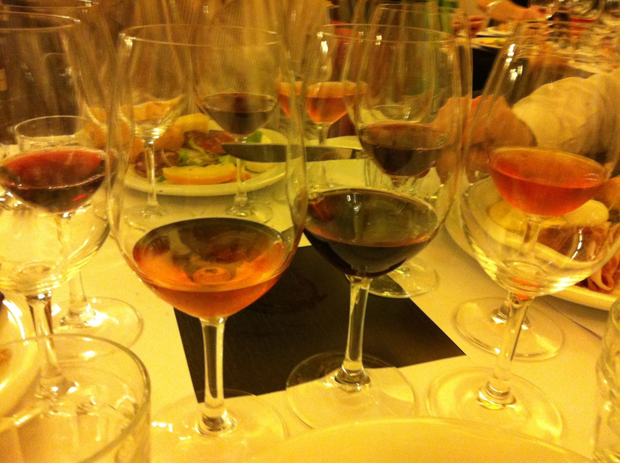 Partiamo con ordine, che parlare di vino senza criterio è pericoloso. Livia spiega le tecniche di cantina, quindi la vinificazione, poi passa alle tecniche di degustazione e infine invita a procedere agli assaggi. L’iter della vinificazione ci è svelata dalla vendemmia alla cantina. Vediamo le differenze tra quella dei rossi e quella dei bianchi, ci soffermiamo sulla macerazione, il mosto, scopriamo gli antociani e i tannini, le tecniche di spillatura, dal cappello sommerso alla follatura, lo scopo dell’anidride solforosa, la fermentazione e i metodi di invecchiamento. Ci togliamo qualche curiosità circa il ruolo del tappo a vite, in vetro, in silicone e in sughero, anzi anche in buon sughero.