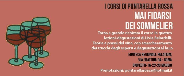 Giovedì, all'Enoteca Palatium di Roma, comincia la nuova edizione di "Mai fidarsi dei sommelier", corso di avvicinamento al vino che è ormai diventato un format fortunato, grazie alla bravura della nostra sommelier Livia Belardelli. Visto il successo della prima, si replica. Per iscriversi, leggete qui. E se volete farvi un'idea di come sarà, ecco un resoconto scritto da Giulia Lucchese, che ci racconta una lezione.