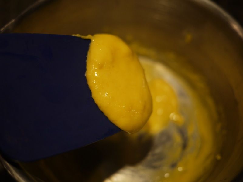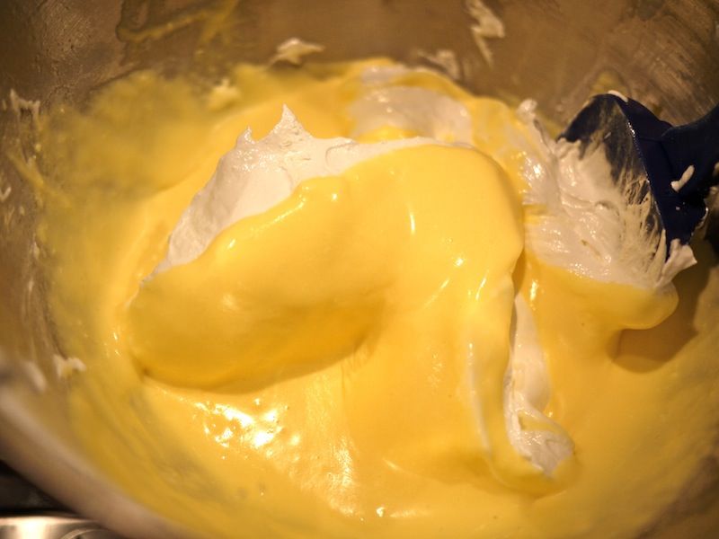 Quando la meringa sarà pronta unite i due composti sempre mescolando con un movimento fluido dal basso verso l'alto.