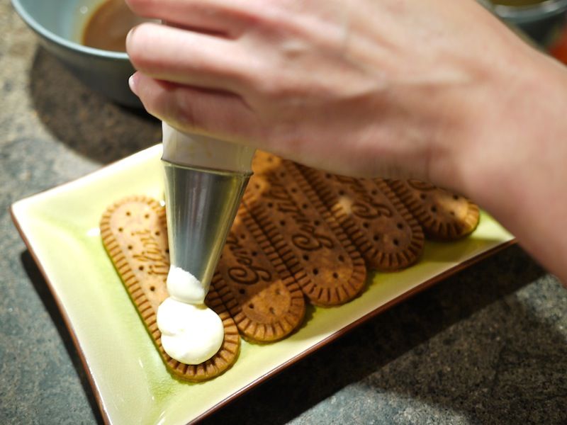 A questo punto non vi resta che procedere come per un normale tiramisù, immergete i biscotti nel caffè freddo stemperato con del marsala o con un altro alcolico a vostro piacere e iniziate a fare degli strati. Lasciate riposare in frigorifero e spolverate di cacao in polvere prima di servire.