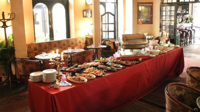 La terrazza con vista panoramica è stata finalmente inaugurata per ospitare l'appuntamento con "Alla day brunch". Da All'oro al The First Luxury Art Hotel il brunch della domenica vi offre un menu interessante. Al buffet centrale troverete antipasti freddi, torte salate e quiche. Tre primi, tre secondi, e contorni caldi (patate, melanzane, crema di fagioli). E ancora il buffet di dolci. Tutto a 30 euro, compreso un calice di vino.