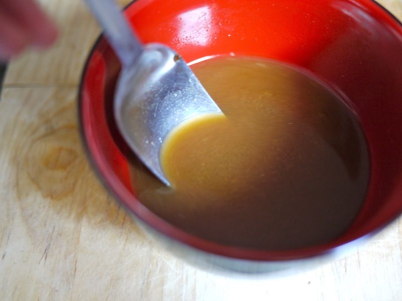 Spegnete il fuoco, aggiungete la salsa tamari, fate intiepidire per 2 minuti circa