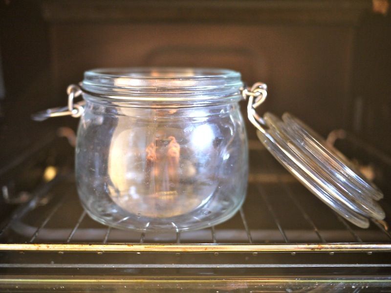 Preriscaldate il forno a 180°C e mettetevi i barattoli di vetro a chiusura ermetica. Lasciate che si sterilizzino per almeno 20 minuti.