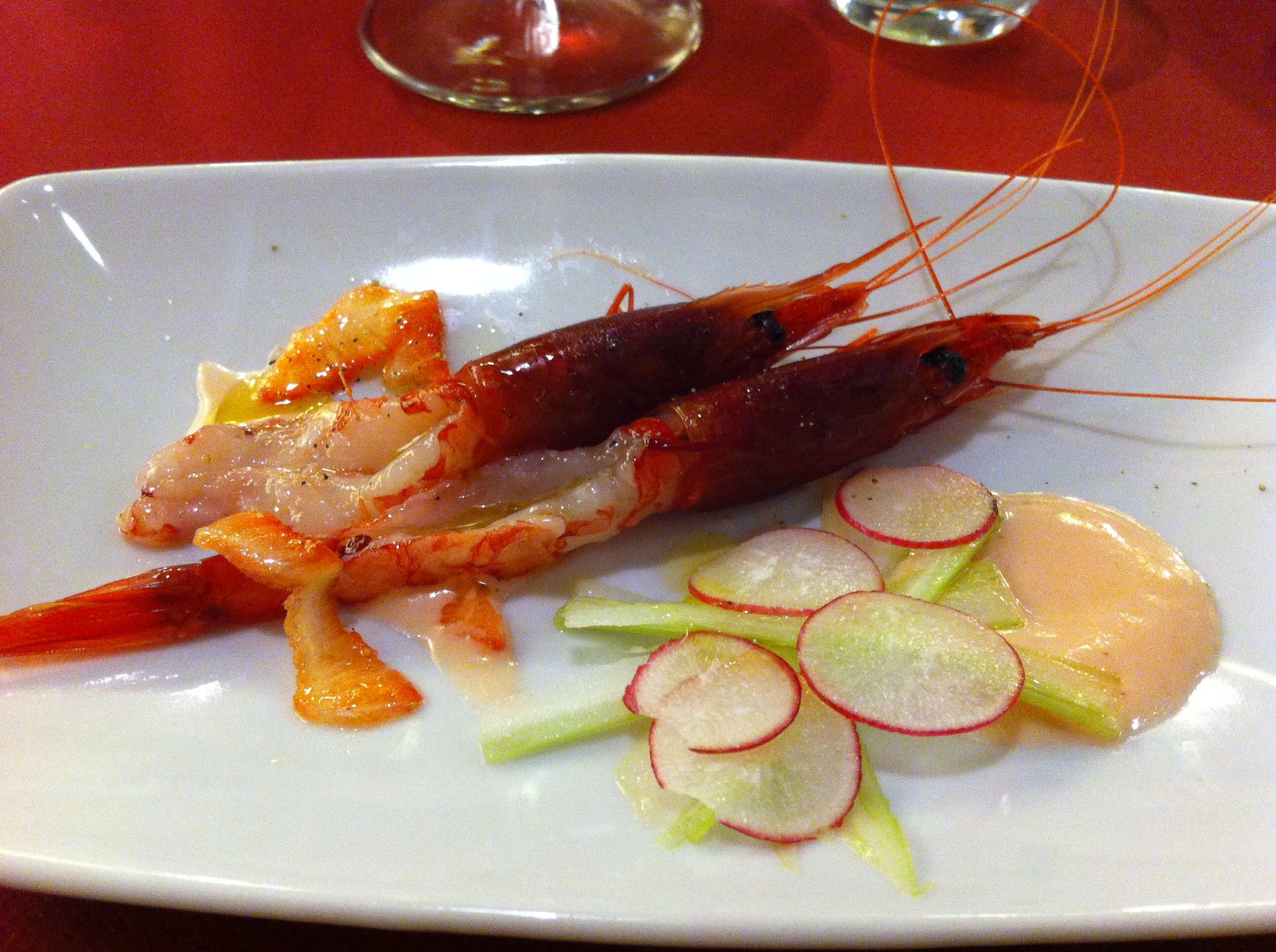 Scampi. Banalissimi scampi appena conditi. Ma a noi piacciono anche le cose semplici, se la materia prima è fresca.