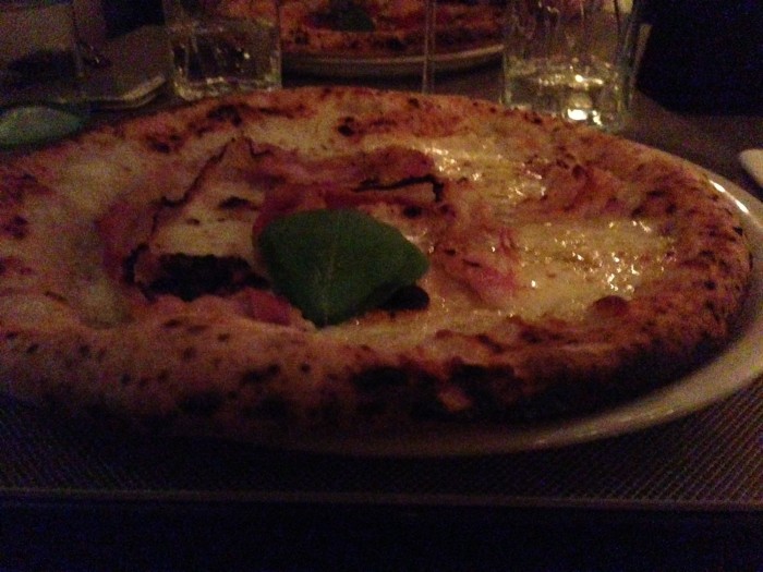 A seguire, prendiamo una pizza Margherita (7 euro): davvero notevole, con cornicione alto, impasto morbido e mozzarella di qualità. Altra pizza, questa volta nelle pizze dello chef (10 euro): Pancetta arrosto: fior di latte e pepe di Sarawak. Concludiamo in bellezza con un dolce, ottimo: gelato fior di latte e balsamela (4 euro). La balsamela, per chi non lo sapesse (come noi) è aceto balsamico fatto con il 100 per cento di succo di mela. La carta dei dolci, in realtà, prevede solo gelati, sorbetti e macedonia.