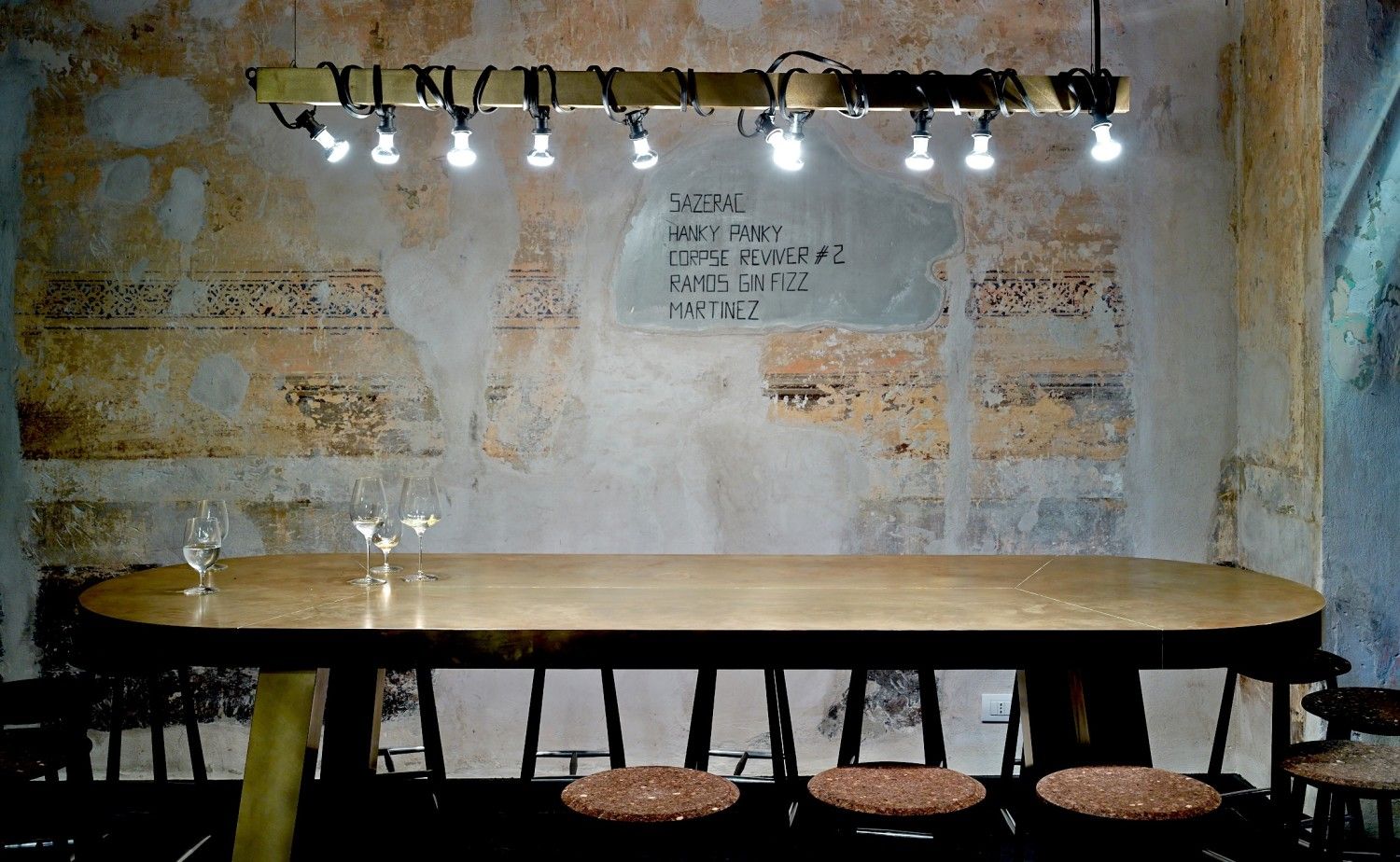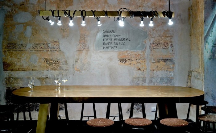Comunque sia Dry è diviso in due locali: uno d'ingresso, il migliore, più armonico e illuminato, con un cocktail bar; e uno più ampio, con molti tavoli e di forte impatto estetico: grandi tubi di ottone, lampade a sospensione, muri scrostati.
