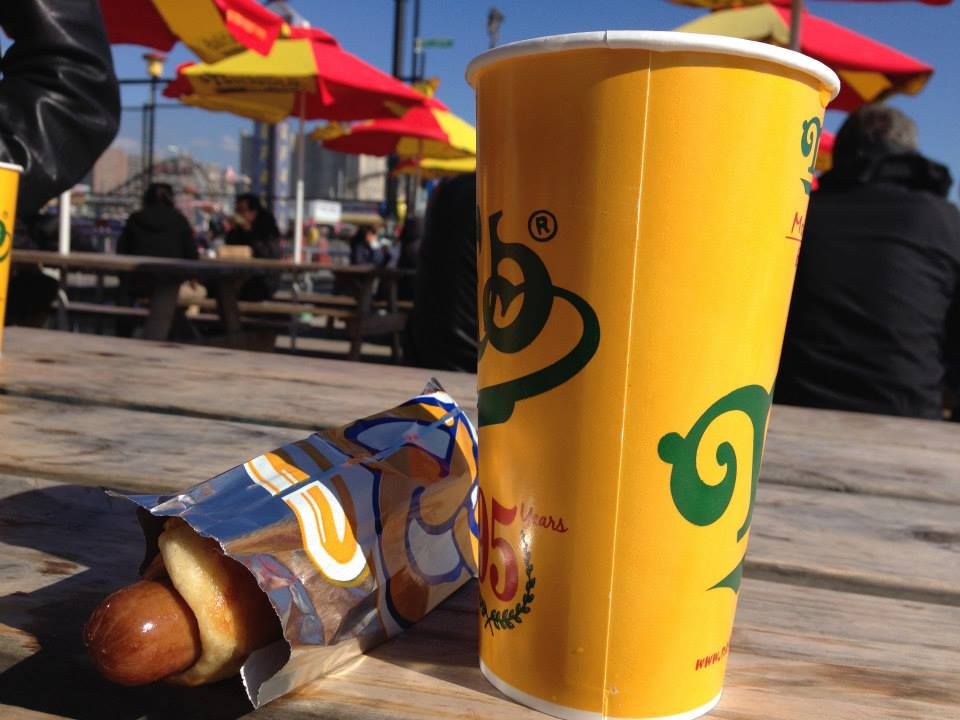 Se andata a Coney Island (andateci, è straordinariamente bella, divertente, ma anche malinconica), non potete non imbattervi in Nathan's hotdog. Siccome siete ragazzi intelligenti, avete già capito che la specialità è l'hot dog: decisamente buono. Se avete voglia di accoppiarci delle patatine fritte, rinunciate: sono fritte in un olio che sembra un combustibile fossile, si digeriscono dopo un paio di settimane. Quanto alla birra, se vi servite non nella sede originale, ma in quella lungo il viale, rispettate le transenne: è vietato bere all'aperto (potreste turbare i bambini e la morale bacchettona americana)