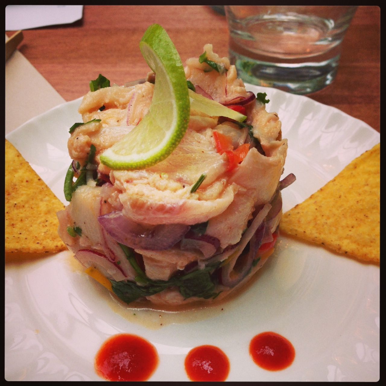 Questo invece è un Chebiche, nello specifico il Chebiche de pescado: persico, lime, olio extravergine, sale, erba cipollina, pepe nero, coriandolo, peperone, peperoncino sud americano e cipolla). Al gusto il pesce risulta saporito e ben marinato anche se non morbidissimo. Occhio alla cipolla, più che abbondante.