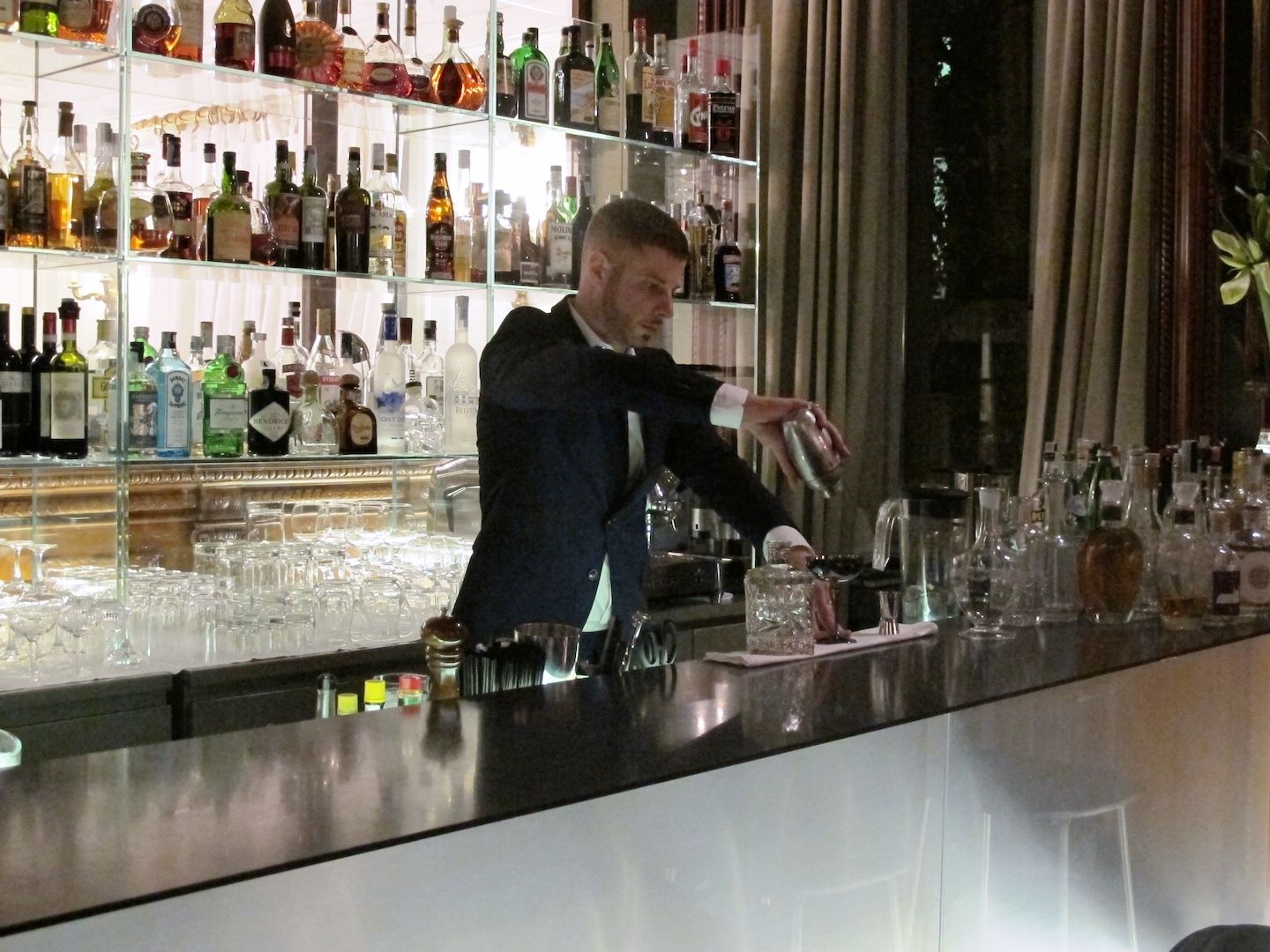 La parola d'ordine sarà divertimento: una sorta di "street bar" dal servizio informale, con cocktail a 15 euro (il Majestic non è noto per i prezzi popolari e lo sforzo è stato quello di non esagerare). E il pezzo forte: la carta. Che segue l'interpretazione del barman, in un gioco che Emanuele definisce "rievocazione liquida", per alludere alla "memoria olfattiva". E così troviamo lo "Sweet Dreams", che ricorda i biscotti al burro appena sfornati, dati dal Butter Scotch fatto in casa e un leggero aroma di nocciola e arancia candita: finale che rimanda a una merendina. E ancora "The Normandy", una bevanda delicata che rievoca i sapori tradizionali della Normandia, dove il distillato prodotto è il Calvados (qui proposto leggermente speziato con cannella & bolle allo zenzero), che ricorda la torta della nonna. Ma anche il classici come il Vesper Martini, il Sazerac o il Gin Tonic (della casa) o cocktail proibizionisti come lo "Smoky Boulevardier", rivisitato da Emanuele con Bourbon, Campari e sweet Vermouth.