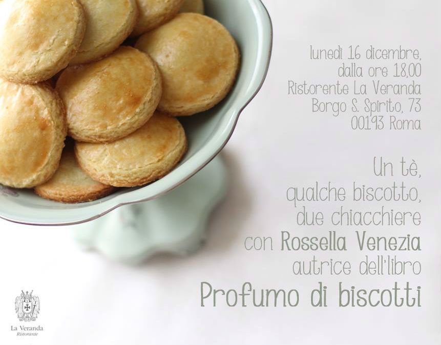 Presentazione del libro "Profumo di biscotti" (Bibliotheca Culinaria) con l'autrice Rossella Venezia nel ristorante La Veranda. Un'occasione per conoscere la scrittrice, sentire i suoi racconti di cucina e ricette, sorseggiando un tè caldo e biscotti (i suoi, naturalmente). Dalle 18 in poi.
