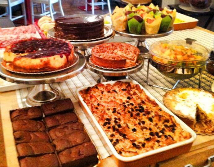 Ecco il brunch più americano di Roma, a base di omelette, bacon, onion rings, cheese cake, cupcakes, pancake, muffin e patate.