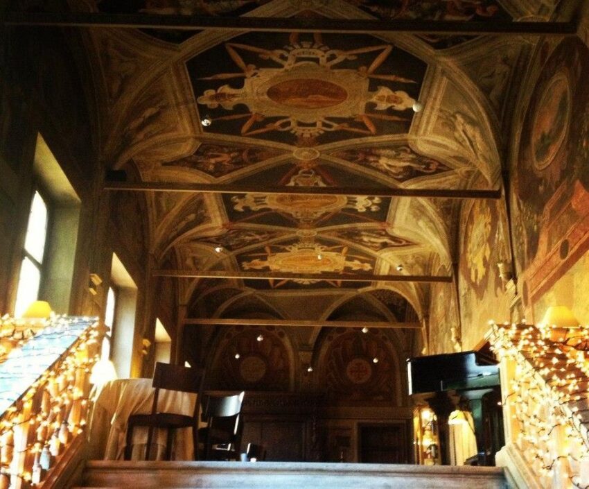 La Veranda è un ristorante elegante in Borgo Santo Spirito, con volte affrescate e un ballatoio con affaccio al patio interno. Era un antico refettorio, l’atmosfera è garantita. Per i più piccoli il menu del brunch è ridotto nelle quantità ed è uno strappo alla regola: hamburger con patatine fritte, muffin e sorpresa. E se avanza qualcosa, c’è la doggy bag. Nel menu di questa domenica: pane burro e marmellata, baguette con uovo strapazzato e bacon, pollo croccante, purè di patate, pancake e sciroppo d’acero, tagliata di frutta, cheesecake ai frutti di bosco, caffè americano, succo d’arancia.