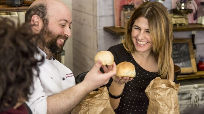 Main course: Panino ancestrale ovvero Rosetta di grano biologico majorca con Misticanza di Albano e Pecorino Romano di Matteo Piras – MP Boulangerie;