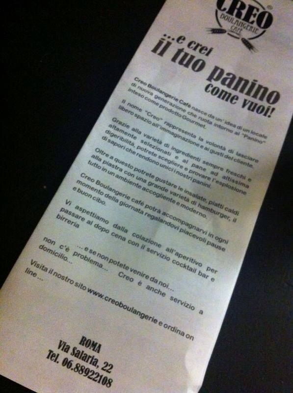 Creo a Roma, sandwich-bar di via Salaria 22 Un bar che ammicca alla boulangerie cafè, aperto a metà dicembre e già è alquanto frequentato. Creo si presenta, almeno sulla carta, come un’ottima novità. L’arredamento è curato nei minimi dettagli e sa di fake vintage, come molte ultime aperture delle città più metropolitane d’Italia, Milano e Roma. Ma, a conti fatti, l’impressione è che la grande scelta a disposizione dei clienti, che fa da réclame al locale, non ci sia. E a ruotare siano sempre gli stessi ingredienti, sicuramente di buona qualità ma davvero pochini per “creare”.