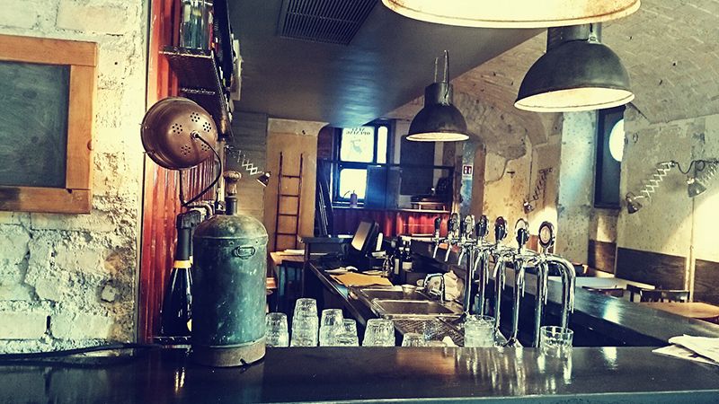 L'ambiente, molto ben costruito, è quello di una taverna portuale (anni fa, qui sotto, si facevano gli speed date). Allegro colorato e (troppo) rumoroso. Sperimentiamo una tavolata di giovanotti con bandana (devono avere preso troppo sul serio le premesse di taverna marsigliese), berretti, tatuaggi e cori belluini da stadio, che mettono alla prova le fondamenta dello stabile e i nervi dei presenti.