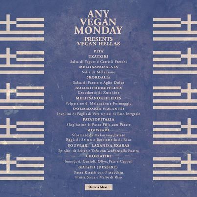 Lunedì all'Osteria Mavi è Any Vegan Monday, la serata dedicata ai vegetariani. Protagonista di oggi la Grecia con un menu che va dalla pita al kataifi passando per la moussaka. Tutto senza carne.