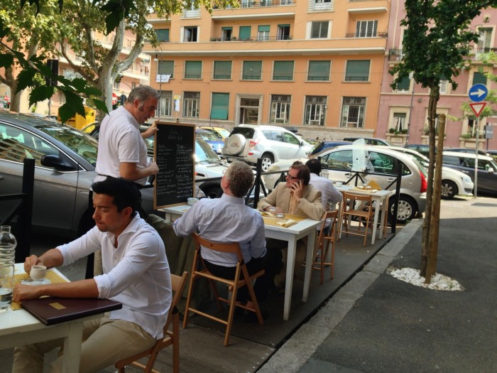 C’è anche un gradevole dehor, in via di abbellimento, in piazza Carracci.