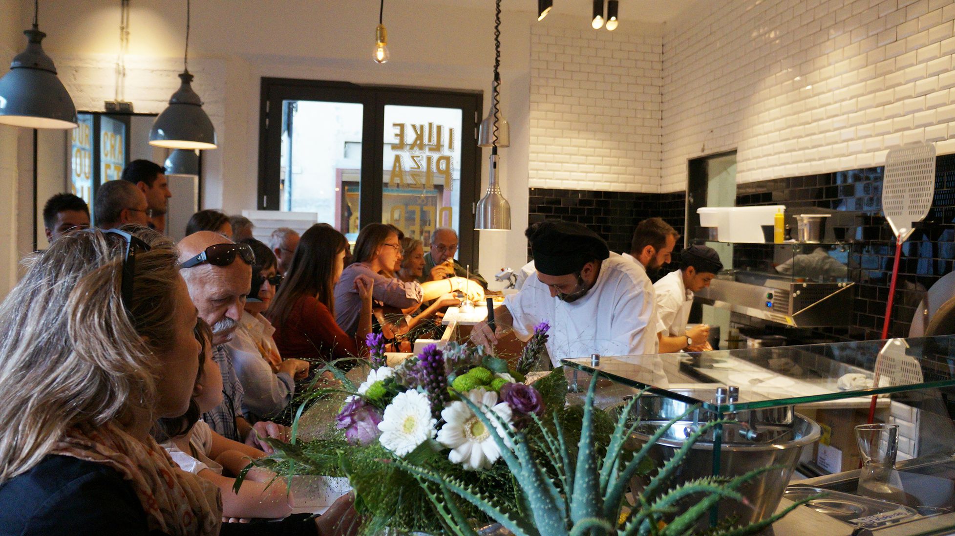 La pizza, in particolare è il frutto di un’attenta ricerca finalizzata, come vuole il trend del momento, a fare a meno del lievito chimico a favore di una pasta madre ottenuta dalla fermentazione naturale a temperatura ambiente della farina attraverso gli zuccheri della frutta. Una scelta orientata a rendere il prodotto più leggero e digeribile, così come l’impiego nell’impasto di farine semi integrali alternative al grano come farro, enkir, kamut. Quanto agli ingredienti del condimento, largo a eccellenze regionali, tra cui molti presidi Slow Food, selezionati su base stagionale. Una “slow pizza” insomma – definizione che i fratelli Aloe preferiscono a quella di “pizza gourmet” – che costituisce il cuore dell’offerta del locale accanto a una proposta di dieci “cicchetti” o antipasti e una piccola selezione di dolci. Da bere, birre artigianali alla spina (6 in tutto) e vini da agricoltura biologica o biodinamica.