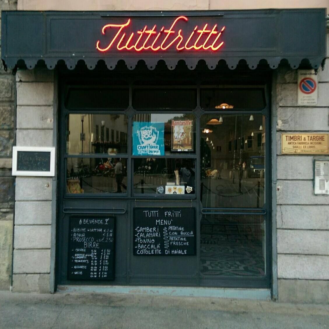 Tutti Fritti ha aperto in autunno, ma da dicembre ha iniziato ad affolarsi sempre di più (forse perché il 27 novembre c'è stata la vera e propria inaugurazione). D'altronde come non notarlo? Affaccia su Corso di Porta Ticinese: uscendo dal locale si possono ammirare le colonne romane di San Lorenzo, oltre alla Basilica di San Lorenzo Maggiore. Che cosa mangia? Beh lo dice l'insegna: "Tutti Fritti". Quindi tutti, ma davvero tutti fritti: c'è la salvia fritta, i fiori di zucca fritti, calamari, gamberi e baccalà fritto, formaggio fritto, patate fritte e naturalmente zucchine fritte, friggitelli fritti, bocconcini di pollo fritti, cotolette fritte e tante altre robe fritte da provare. In più potrete abbeverarvi con birre artigianali. Quanto costa? Poco. Con 5 euro assaggerete una bella porzione di fritto. Una sola raccomandazione: non venite qui con l'idea di sedervi perché i posti son pochi. Certo, c'è qualche sgabellone in giro per la sala, ma sostanzialmente il fritto si degusta in piedi. Se siete nelle vicinanze delle Colonne e cercate un fast food all'italiana (il riferimento non è alla qualità delle materie, bensì alla velocità dei pasti) questo è il posto per voi.