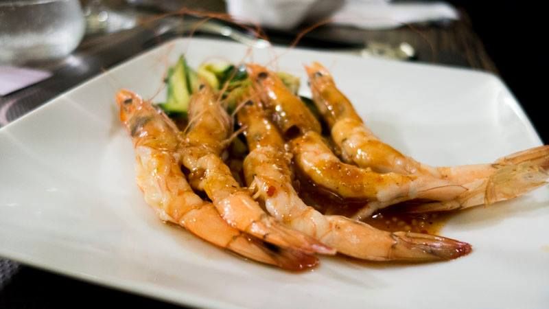 Per gli amanti della cucina cinese classica ci sono i ravioli alla piastra ripieni di carne, cavoli e zenzero (6 euro), gustosi e chiaramente fatti a mano poco tempo prima e un’interessantissima zuppa agropiccante (9,5). Per gli amanti del tocco cinese (cinese per carità, non fusion) ecco la tartare di tonno con una punta di peperoncino (8,5) e l’esplosione in bocca (fresca, dolce, un po’ spiazzante ma dura poco) del caviale di pesce volante, una delizia. Che il proprietario chef sappia da dove viene e dove va si capisce dalle moeche fritte su un fondo di crema di patate dolci che sfido molti ristoranti veneziani a fare così buone, croccanti e leggere.