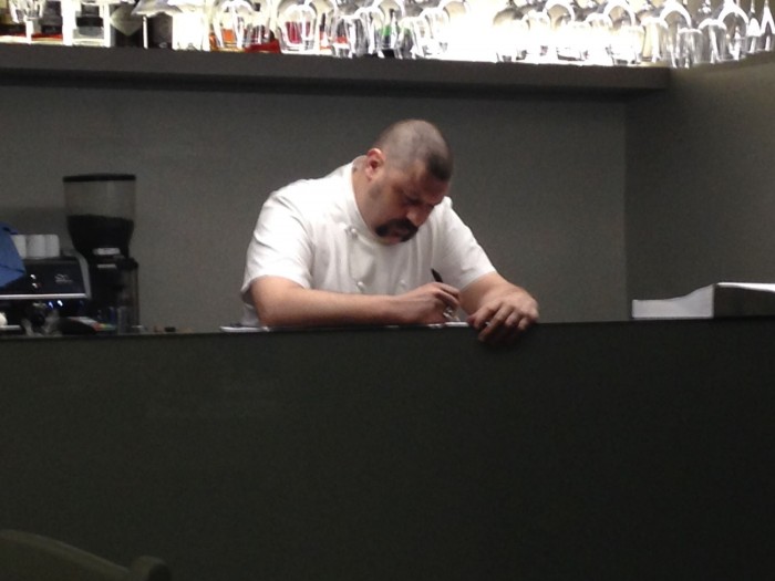 E, come pochi chef in circolazione, è sempre lui a metterci la faccia, gironzolando tra i pochi tavoli e chiacchierando con i clienti, alternando una gentilezza ruvida a battute rilassanti, senza essere invadente.