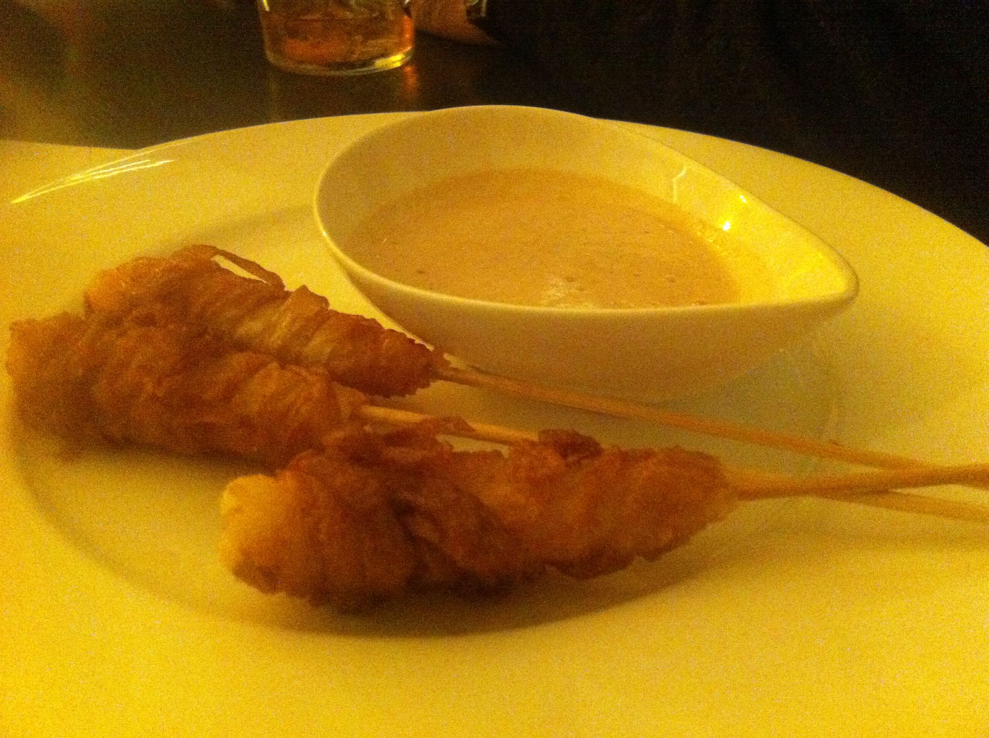 Emergenza fame. Pronti a sfogliare il menu e scoprire le proposte di Andrea Fusco selezionate per il Chorus. Due le formule previste, la carta o il menu degustazione a 40 euro. La carta ha tre proposte, tutte a 35 euro: filetto di manzo alla Rossini, con il suo fondo, scaloppa di foie gras e tartufo nero; trancio di salmone Alaska con crema di riso venere, yogurt e germogli; oppur astice al vapore, con insalata di campo e frutta esotica. E poi dolce del giorno o tagliata di frutta. Il menu degustazione, invece, lo Chef Dinner Set, si compone di riso venere con noci, radicchio trevigiano e porcini; misticanza con patate, pesto di pistacchi e pomodori secchi; spiedino di gambero con pasta fillo con spuma tiepida di mortadella (in foto); insalata tiepida di patate, polpo e olive taggiasche; tartare di manzo con sale Maldon, gelato al parmigiano e aceto balsamico; paninetto di fois gras con cipolla di Tropea caramellata, maionese di fichi e tartufo nero estivo (consigliato); riso basmati al curry con pollo in salsa Teriyaki e pasta del giorno.