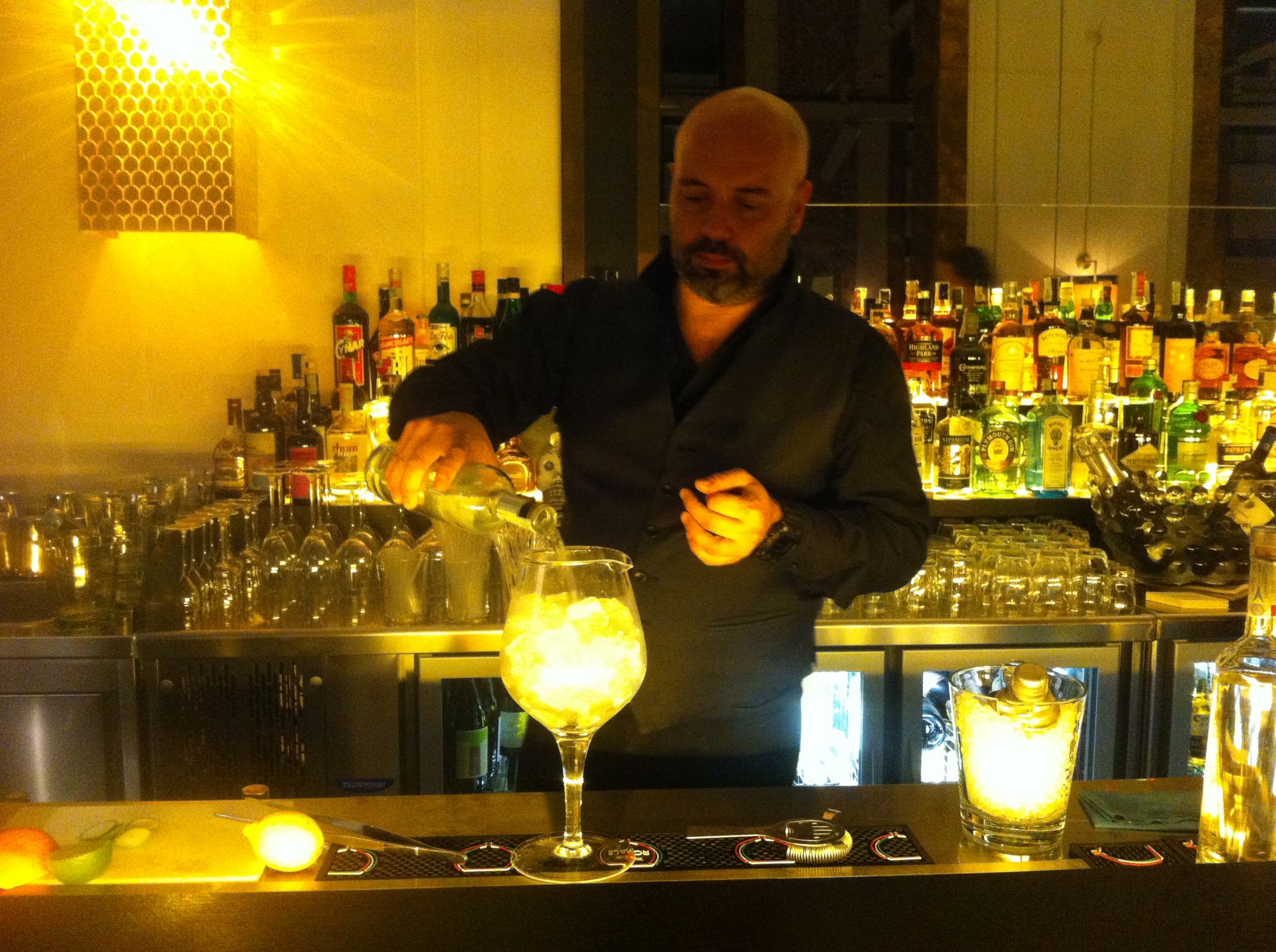 Chorus Cafè all'Auditorium Conciliazione di Roma. Eviteremo lodi superflue sulle capacità tecniche e sulla creatività. Ci rifacciamo a quello che forse lo contraddistingue maggiormente, un savoir faire discreto, misto al fare sbarazzino. Non importa dove, se in un hotel di lusso o un raccolto cocktail bar in periferia, con Massimo D'Addezio al bancone non ci si lamenta mai. Anche se è uno dei migliori barman di Roma, evita accuratamente di prendersi sul serio. Non a caso, sbeffeggia bonariamente la categoria, apostrofandosi mischiologist. Mentre procede a gonfie vele il suo Co.So. al Pigneto, ben saldo nelle sapienti mani di Valerio Albrizio e Giorgia Crea, Massimo, che sovente fa capolino nella sua creaturina ben riuscita in quel del Pigneto, si è buttato in un nuovo progetto. Siamo stati a trovarlo al Chorus Cafè, nel mezzanino dell'Auditorium Conciliazione, un elegante cocktail bar con cucina, curata da un altro grande nome della ristorazione capitolina, Andrea Fusco (patron del Giuda Ballerino!).