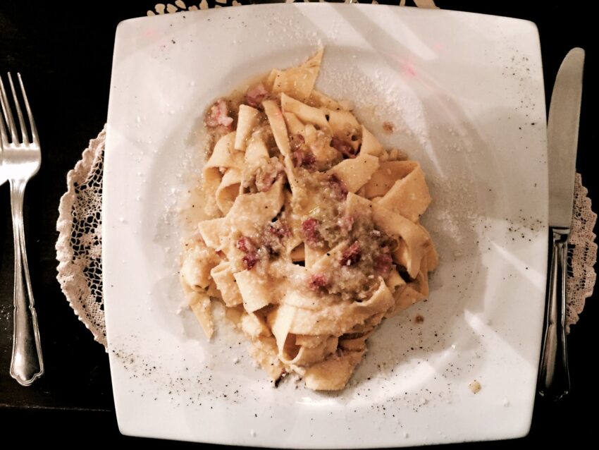 Sempre tra i primi, le pappardelle porri e pancetta (10).